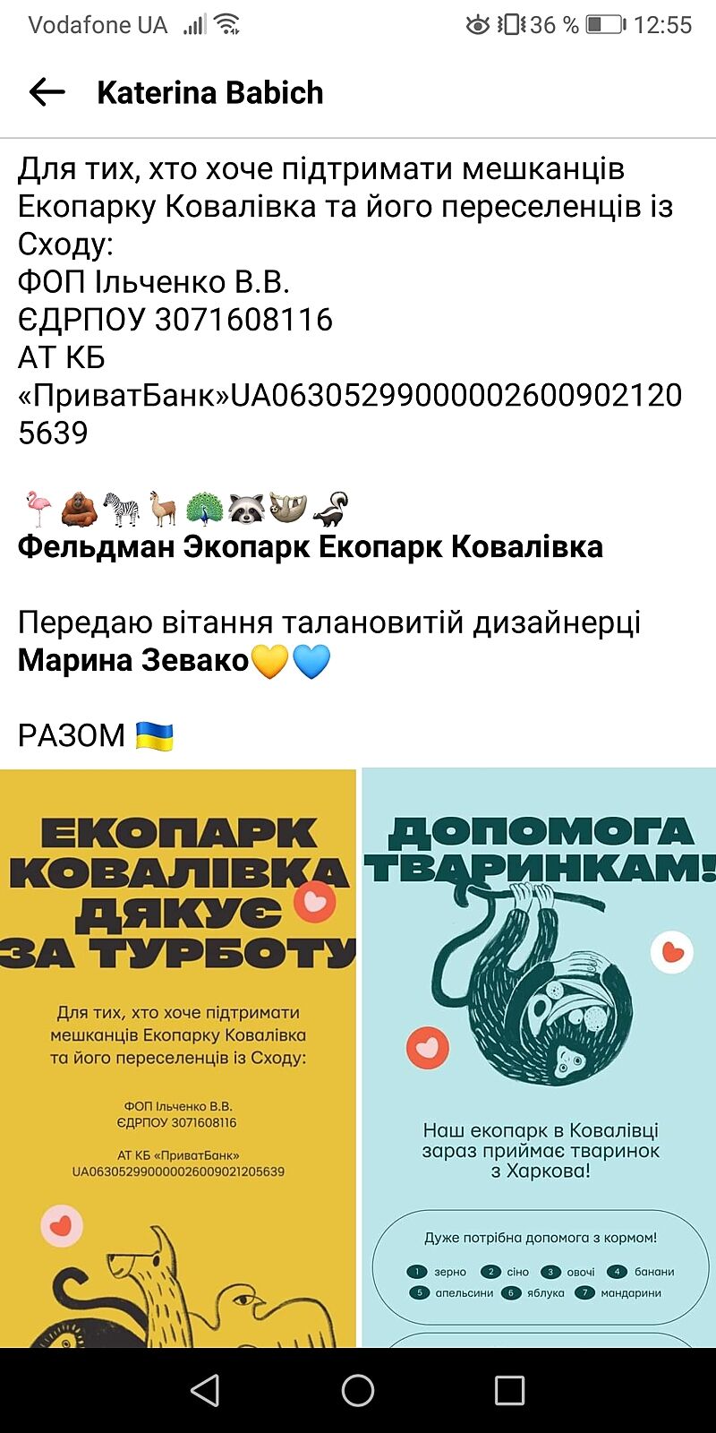 Я писала уже в ФБ на странице Экопарка, в комментариях. Попробую ещё в личку и туда куда вы сказали. Чуток позже, сейчас воздушная тревога как-раз загудела, нужно хоть полчаса ’потревожиться’ пойти.