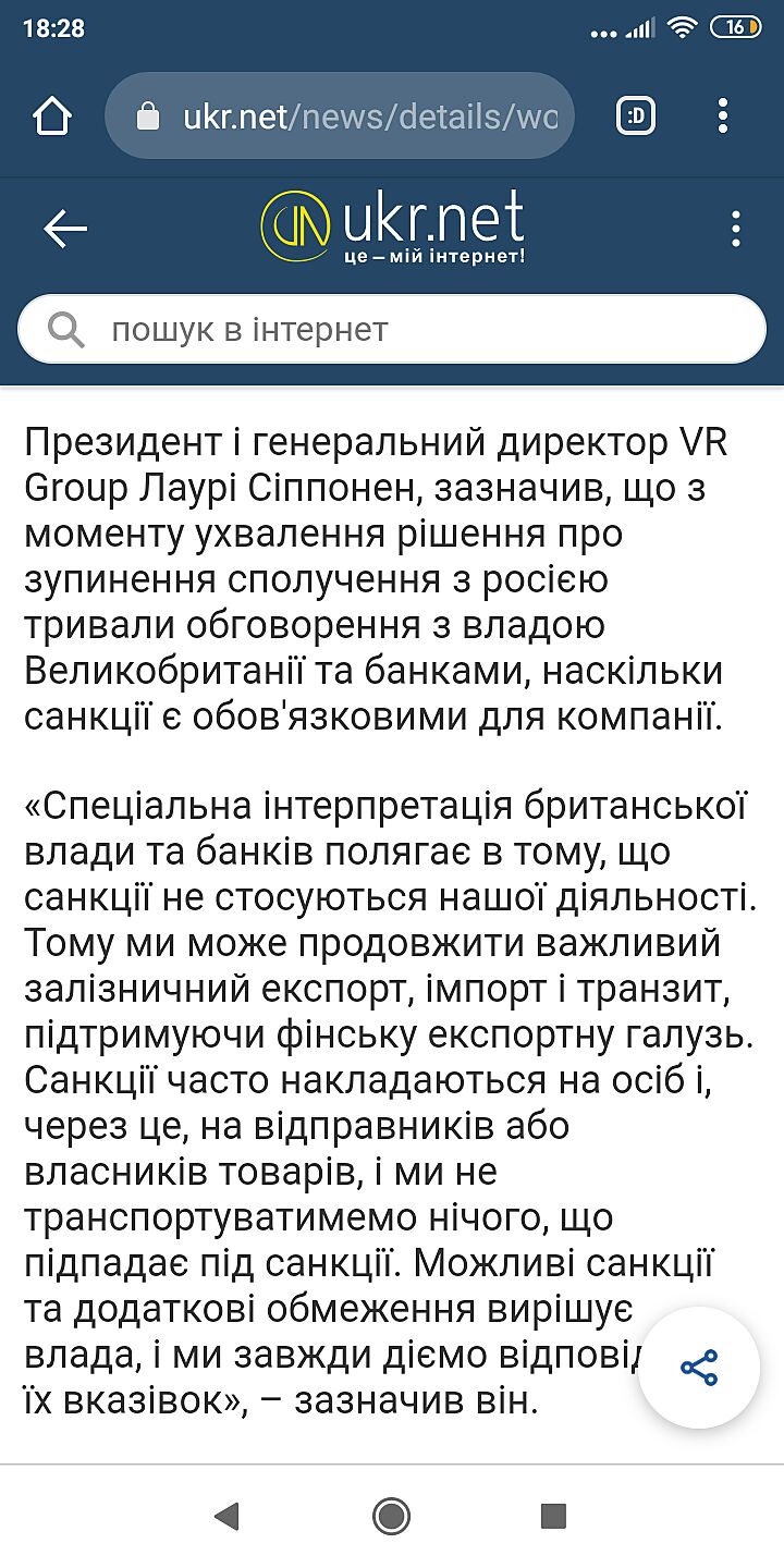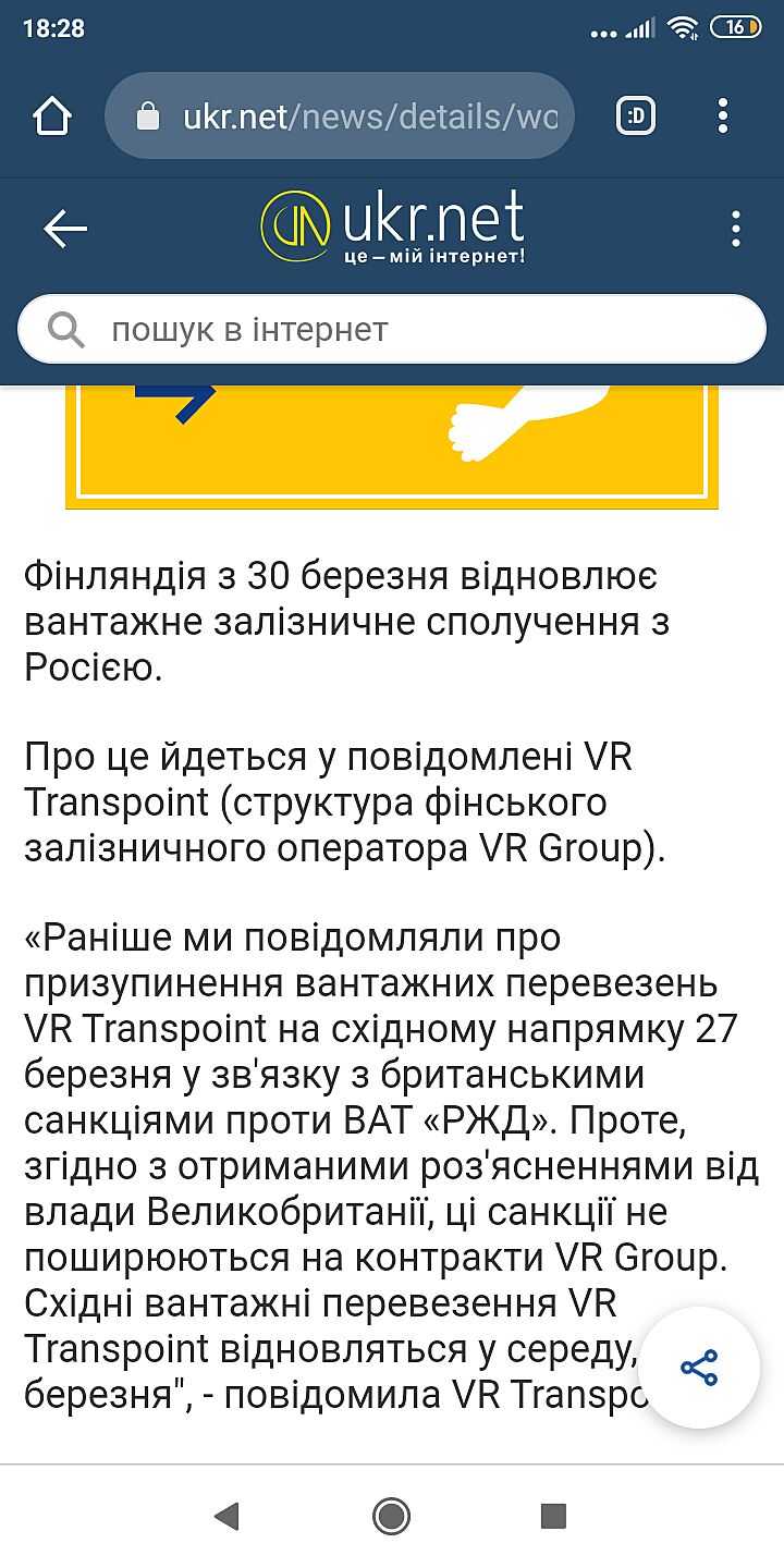 Кстати, на ютубе видела ролик росийского экономиста, где он рассказал, что рашке жопа наступит. Но одна фраза меня задела, он сказал, что в этом году семенной материал им ещё дадут, а вот в следующем году уже нет. Так что отсадится рашка в этом году. И в Молнии сегодня прочла, что фины возобновляют грузовые ж/д перевозки.