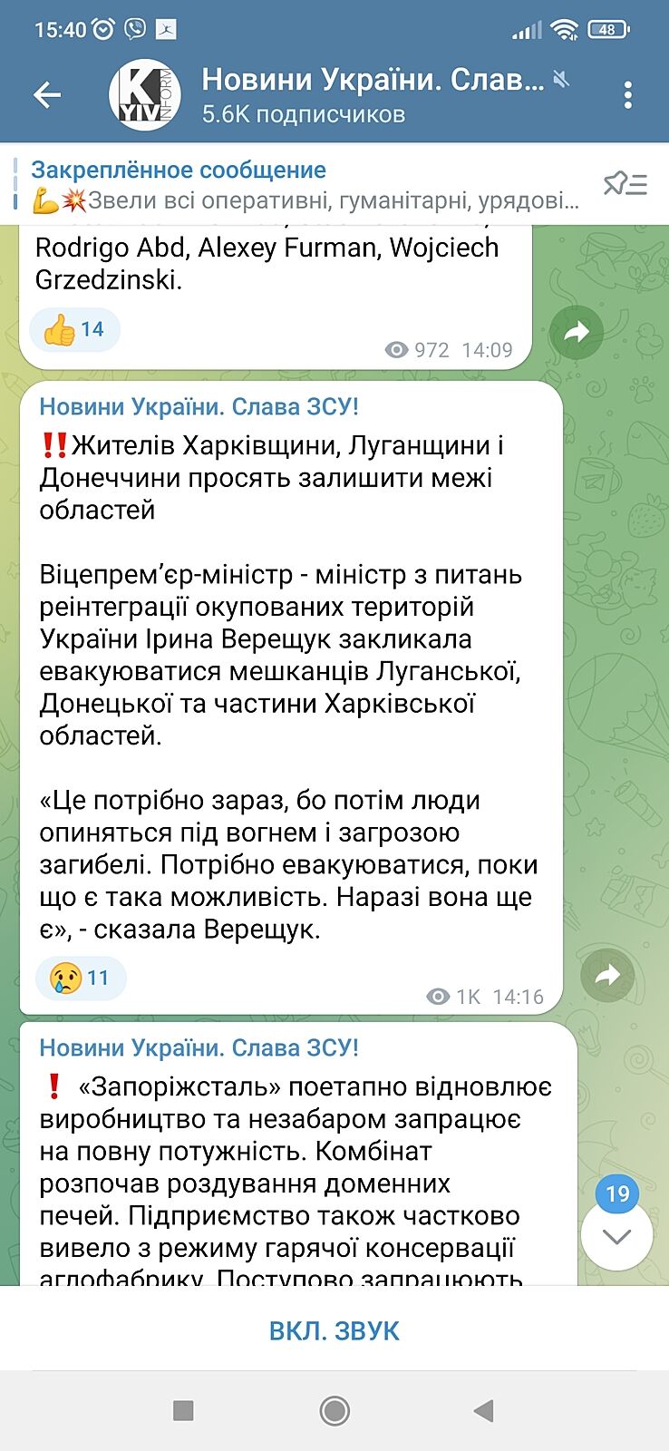 Віцепрем’єр-міністр - міністр з питань реінтеграції окупованих територій України Ірина Верещук закликала евакуюватися мешканців Луганської, Донецької та частини Харківської областей.