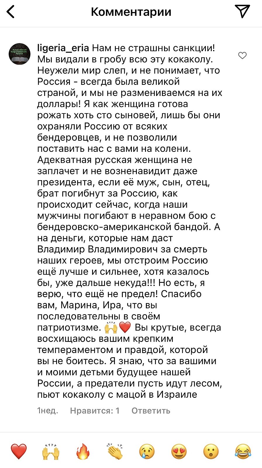 Хочу вам показать комментарий от живой рашкинской Маньки, со старой ведущейся страницы. Комментарий скринила лично я в живой теме. И в нем все сказано по наши ложные надежды о «непускании»