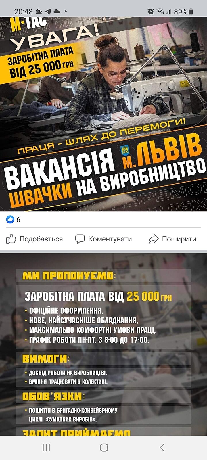 Це в ТГ каналі побачила, подумала що може хтось шукає роботу у Львові
