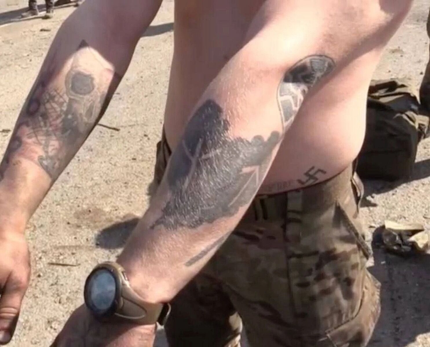 Девочки, не ругайтесь. Да, у многих азовцев есть символы. Свастикой это начали называть после 2ой Мировой, когда Гитлера позаимствовал эти символы для пропаганды. На самом деле это знаки-обереги, руны еще со времен язычества. Поинтересуйтесь, что такое коловрат и прочее.