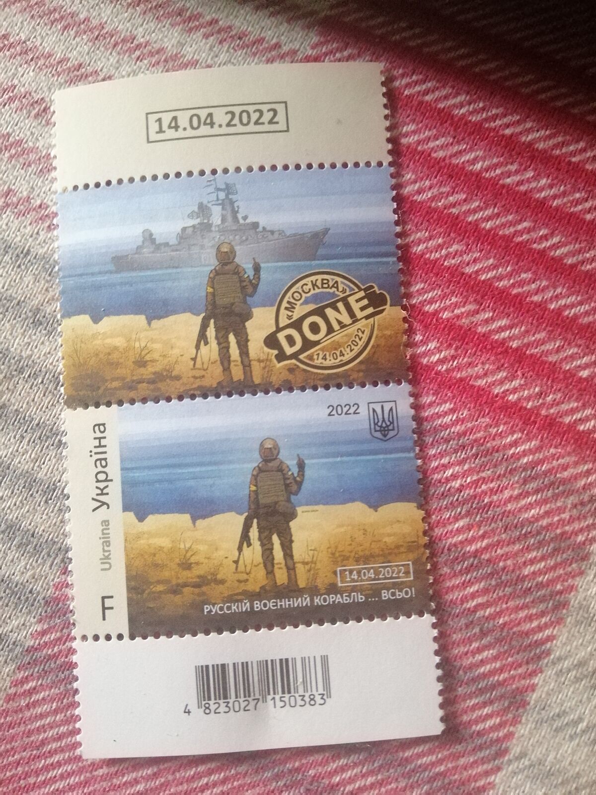 Кому цікаво, можна без проблем купити марку Русский корабль на сайті УП в будь- якій кількості замовлень, але одним листом+платна окрема доставка, в сумі 105 грн виходить. Також є конверти цієї серії.