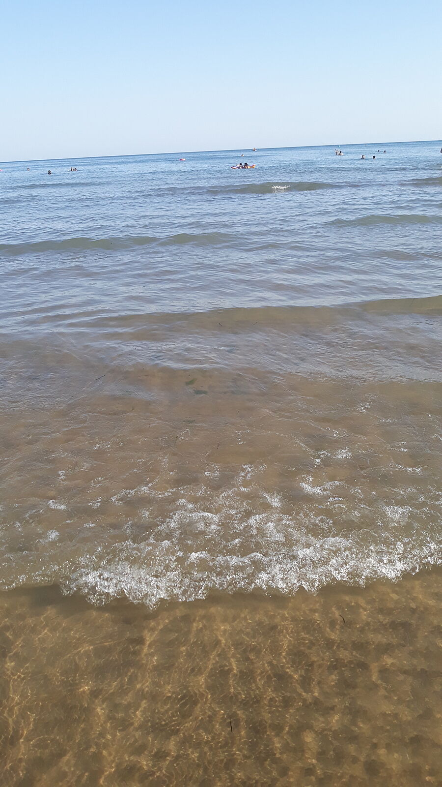 Фото я делала во время написания отзыва. Вода чистая, если зайти на косу, 50 метров от берега видно ноги.