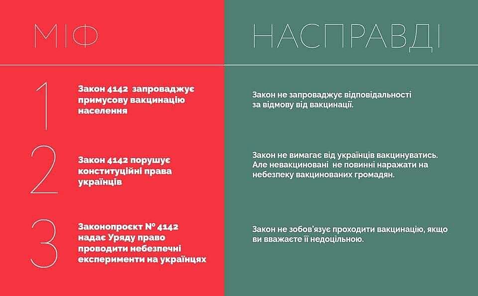 Міф № 1: закон № 4142 запроваджує примусову вакцинацію населення