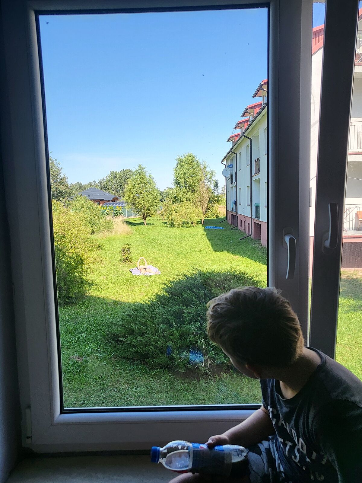 Сейчас живём в мини-отеле (общаге) навколо наші заробітчани та мамы з дітками. Загалом більше мам та дітей. Тож напроти мого вікна часто спостерігається така картинка.