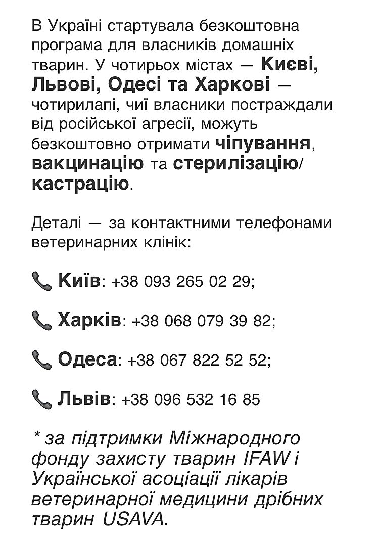 В Черкассах тоже акция в Панде. Бесплатная стерилизация при условии прививки от бешенства и чипизации.
