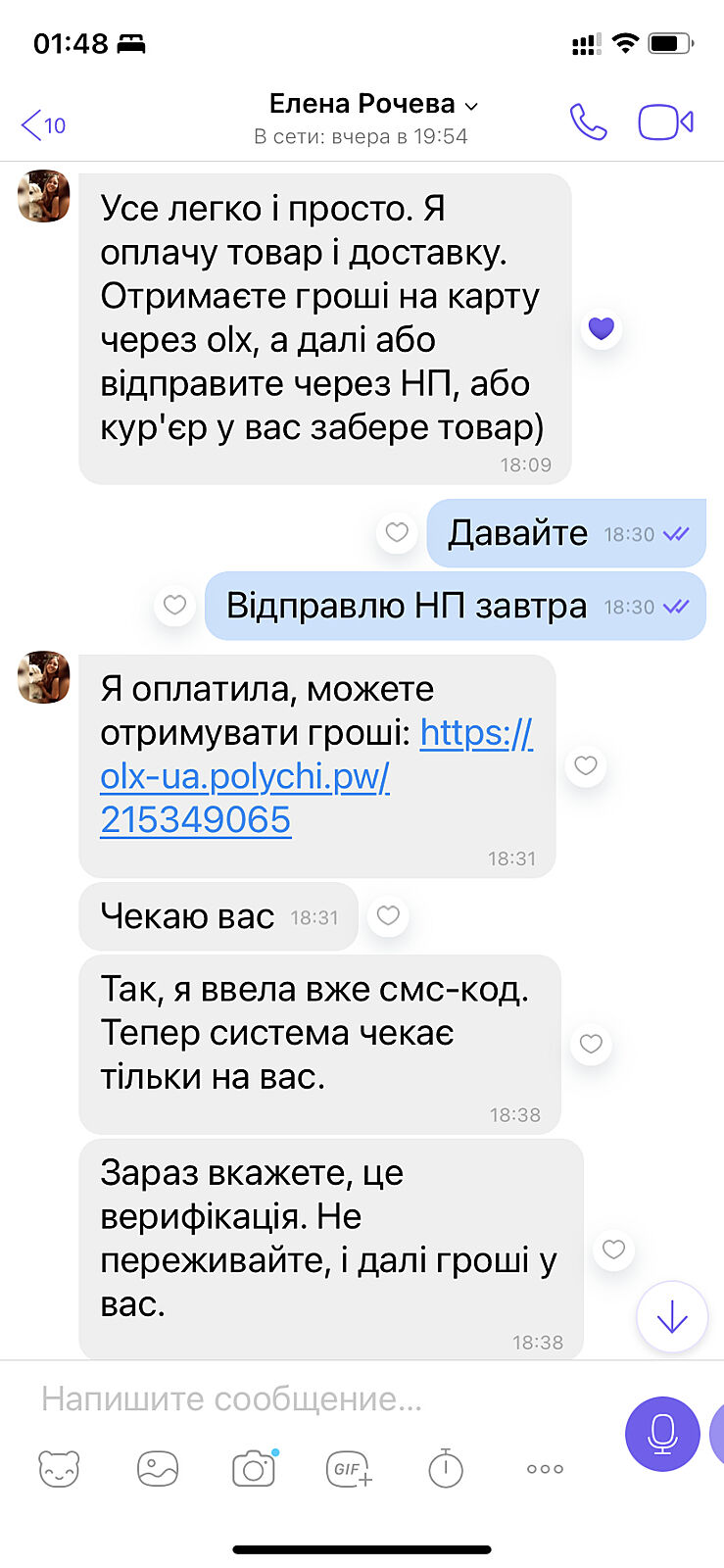 Да( я раньше покупала через ОЛХ доставку, поэтому не заподозрила ничего. А тут я как продавец выступала( я поняла, что что-то не то, и сразу сменила пароль ко входу в Приват, но надо было сразу менять ПИН КОД и блокировать карту….не так часто что-то продаю на ОЛХ, потеряла бдительность( (