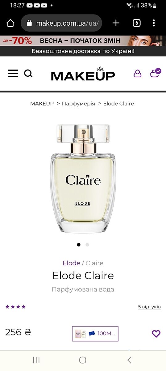 В нещодавніх темах про бюджетну парфумерію дівчата шукали дешевші аналоги Chloe. Я зайшла сьогодні в Єву і затестила Claire від Elode, мені сподобався аромат! Маю відливант оригіналу, то звичайно не 100%, але приємно звучить і в тому ж напрямі. Хто шукав, зайдіть в Єву і послухайте аромат-) Проте на Мейку дешевше на 80грн, враховуйте доставку, якщо треба замовляти через інтернет.