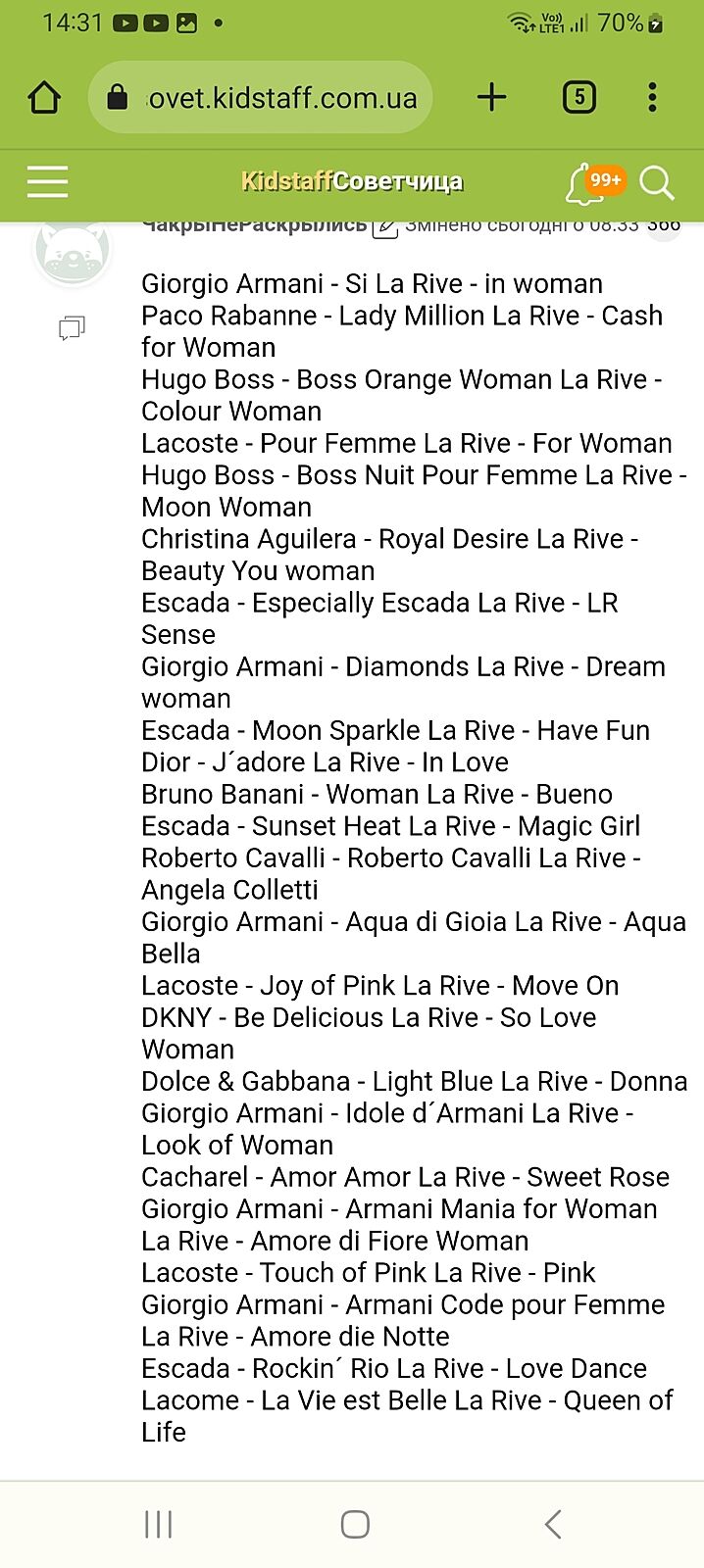 Ой, гляньте огляд польською. Я мови не знаю, але зрозуміла так, що клон від Ла Рів звучить краще і не хімозно, так-так, дівчата тут теж радили Cute