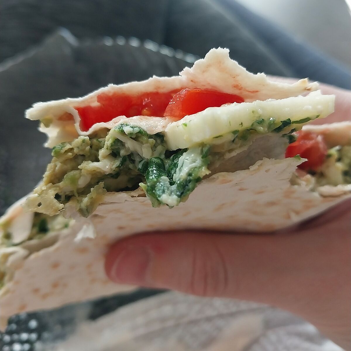 Як правило на сніданок вівсянка на молоці і бананчик, але сьогодні по-недільному відірвалась... лавашик з омлетом (омлет яйце з молоком і мороженим шпинатом, помідори коктельні, сир моцарелла) підсмажений на гарячій сковорідці.. ням ням, може комусь знадобиться як порада сніданку, дуже ситний, тому достатньо 1шт (300 ккал)..