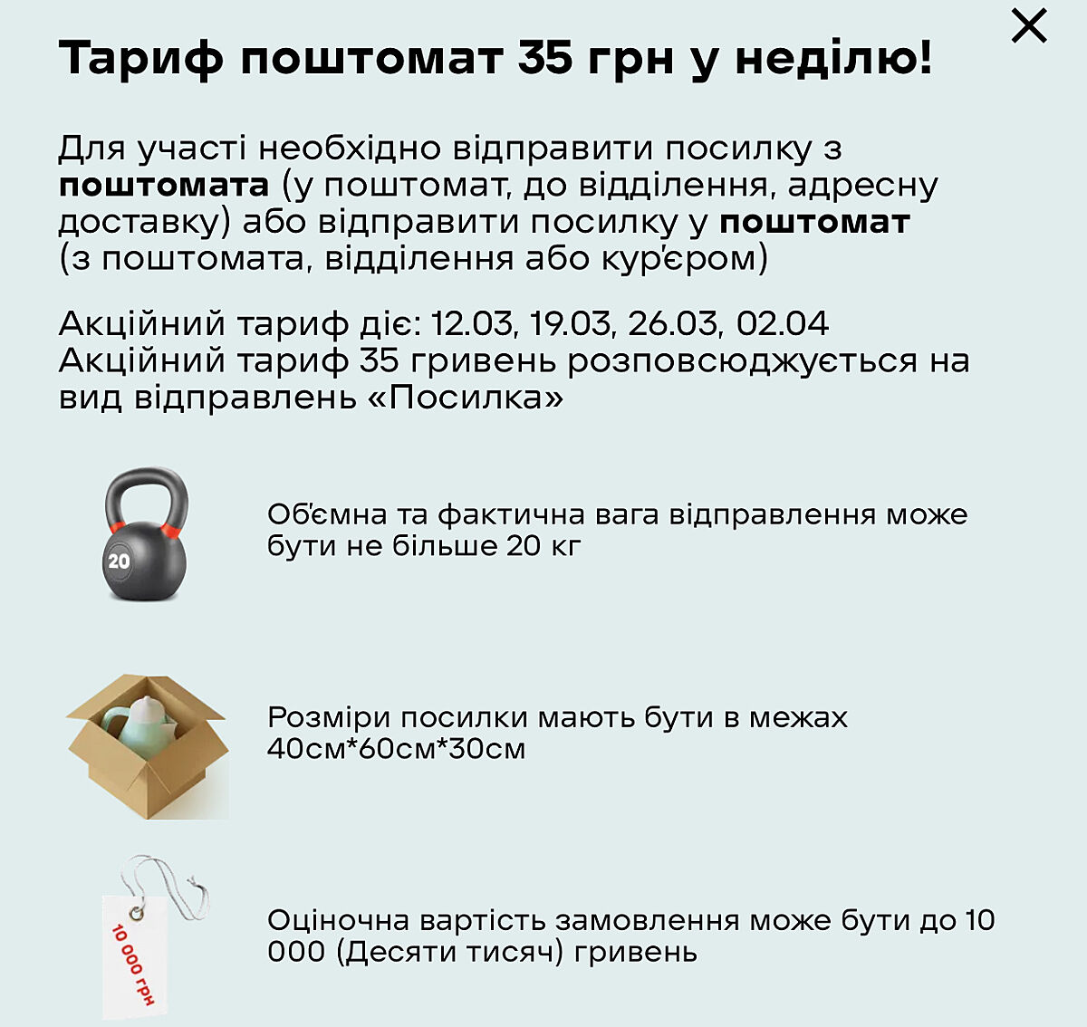 📦Акція проводиться з 00:00 12 березня до 23:59 02 квітня 2023 року, а саме у неділю 12.03, 19.03, 26.03, 02.04