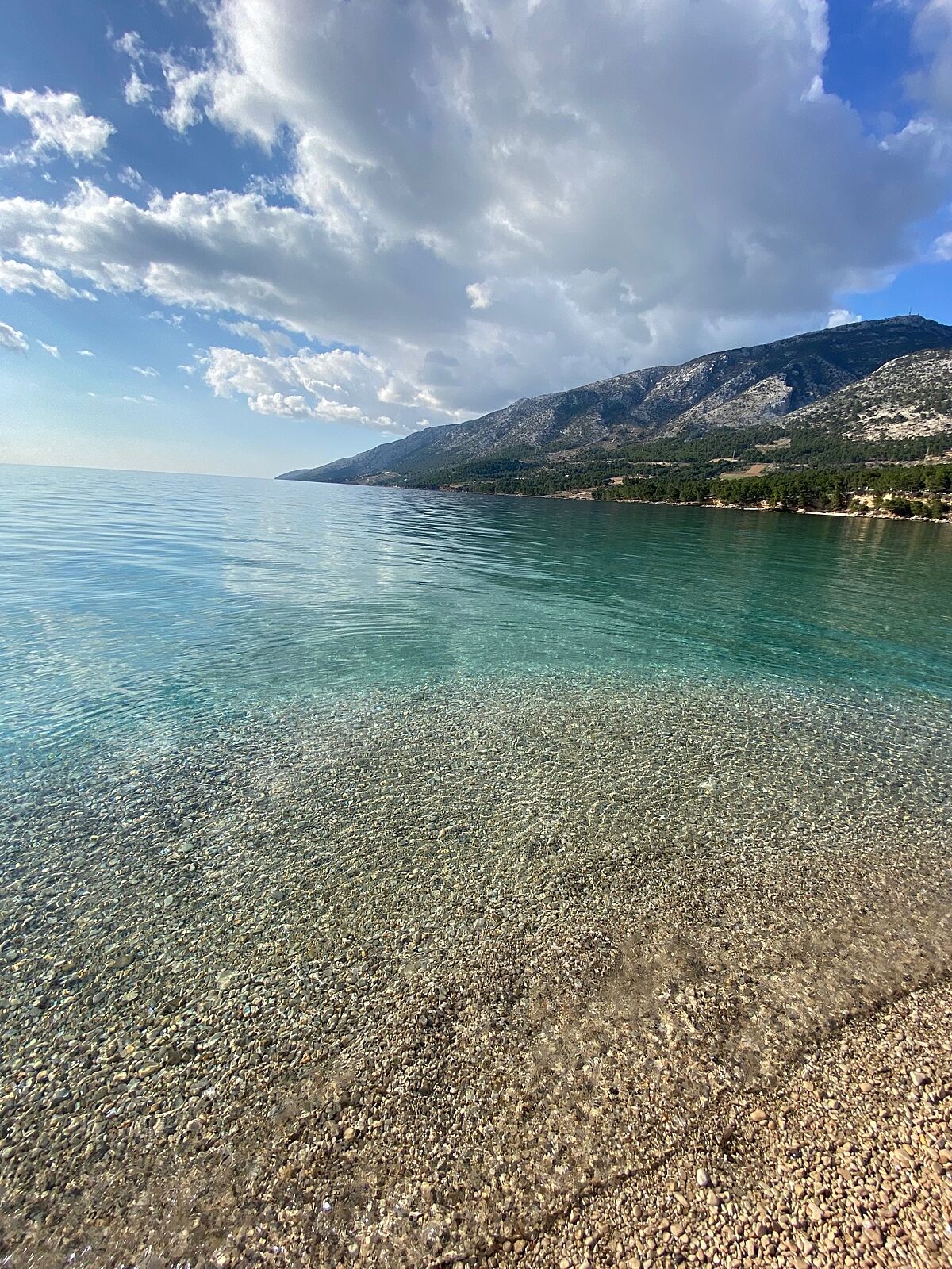 Питали не мене, але відповім, бо всю зиму була в Хорватії і дуже багато мандрували узбережжям. Гарний пляж для дітей в Оміші, це неподалік від Спліту. І Макарська також. Ось тут видно берегову лінію Оміш і Макарська.
