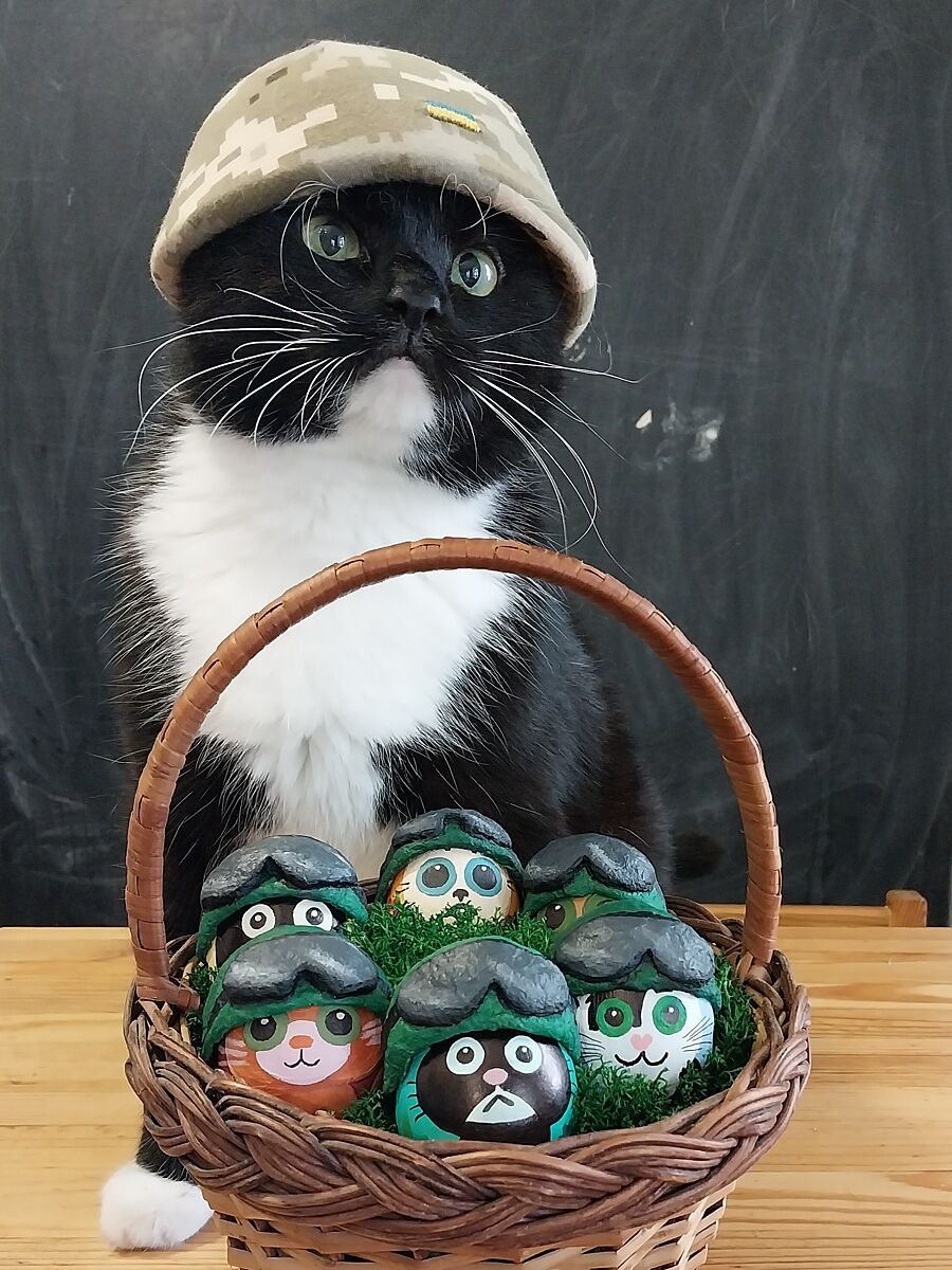 Ну яйця фарбовані акриловими фарбами... а каски - то лотки з яєць розмочити у воді, подрібнити у блендері, процідити через марлю від води, додати клею ПВА і розмішати руками...все... ліпила прямо на вареному яєчкові (змащеному олією) і сушила у духовці при 50 град прям на яйці вареному