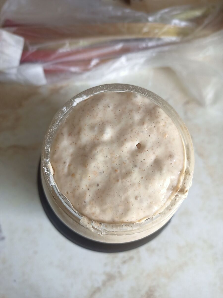 В мене просто було багато лишньої закваски, бо вирощувала і мамі і подрузі і собі пшеничну. То я її просто вилила в миску, окремо збила яйця з цукром для шарлотки з ревенем та яблуками, з´єднала це разом і додала всього пів стакана муки, шарлотка була чудова) Також я робила піццу, тісто було рідкувате, я його руками розподіляла по деку, але піцца вийшла дуже смачна, зі скоринкою)