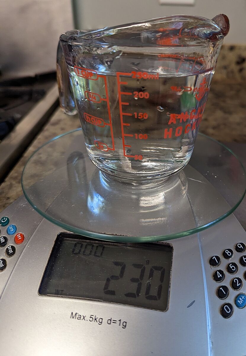 Я, наприклад, маю мірну чашку, якщо я набираю до поділки 250 мл, вага показує 230. А це вважається хороша мірна чаша.