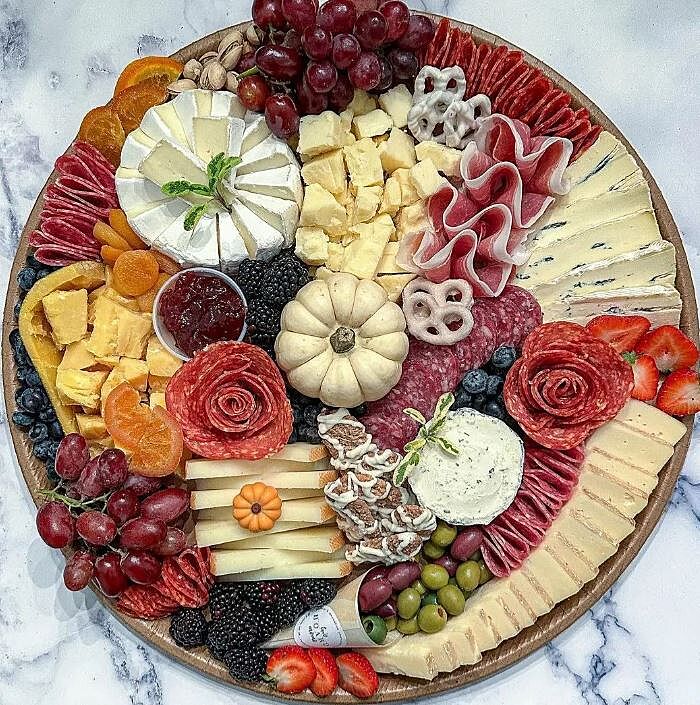 креативной подачи не увидела. извините, обычная выкладка.. и сыр можно было иначе нарезать..и хотя бы как то на шпажки сделать с оливкой.. про выбор марки сыра промолчу.. как и про камамбер в центре тарелки.
