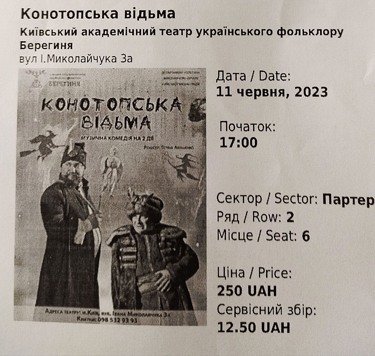 Подарую 2 квитки на виставу "Конотопська відьма". В мене, на жаль, не виходить.