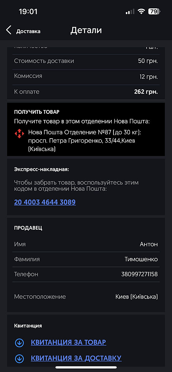 В последней день сделки мне звонят по вайберу(я не услышала) там же пишут, типа я на почте треба оплатить коробку 85 гривен.
