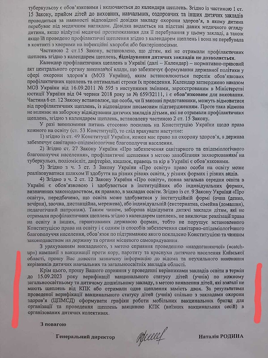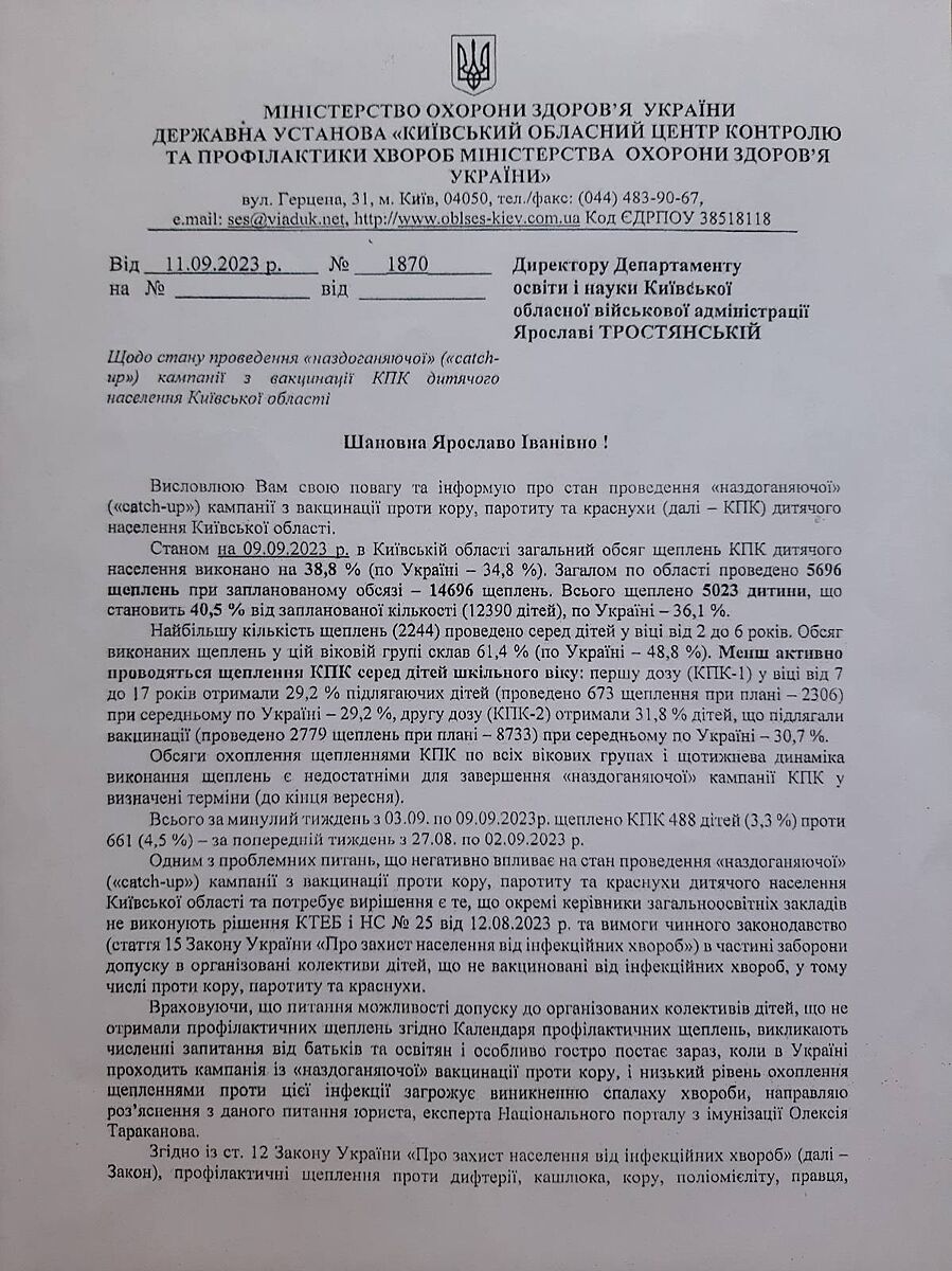 ’І якщо буде десь виявлений випадок на кір в будь-якій школі, то ця школа закриється мінімум на 45 днів’.