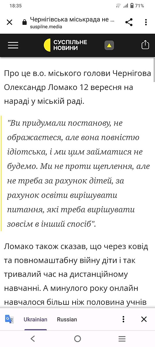 Ломако також сказав, що через ковід та повномаштабну війну діти і так тривалий час на дистанційному навчанні. А минулого року онлайн навчалося більш ніж половина учнів Чернігова.