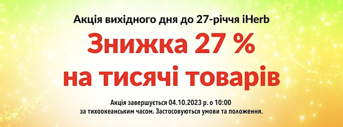 🎉ОСТАННЯ АКЦІЯ до Дня народження iHerb: ЗНИЖКА 27% за СУПЕРАКЦІЯМИ (без коду) на понад 8 000 товарів до 4 жовтня 20-00