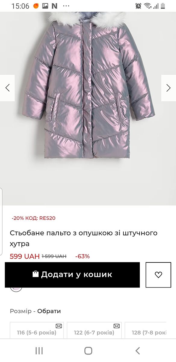 )) у меня просто ребенок, а не девушка. Это детская куртка. Мы не торопимся взрослеть. Спасибо за ваши наблюдения за модными тенденциями ведущих брендов, опыт в покупке детских курток для девочек. Он очень важен. К сожалению уже за сезон в украинской детской моде происходят такие быстрые изменения, что Sinsay и Reserved не успевают менять коллекции.
