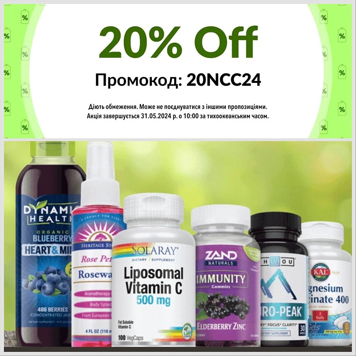 💚Знижка 20% на бренди корпорації Nutraceutical за промокодом 20NCC24 до 31 травня