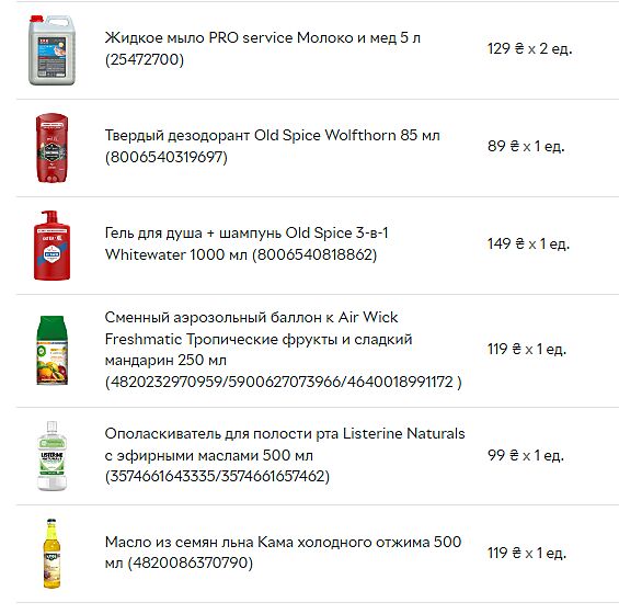 я уже скупилась на 4534 грн на мыльно рыльное разными заказами, чтоб не послетало, и сижу еще выбираю, надо купить лезвия, ополаскиватели, гели для стирки и корм