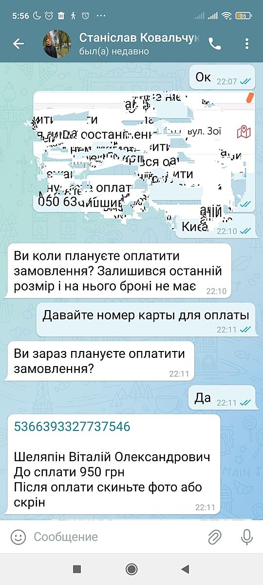 В инсте создана страница с рекламой обуви известных брендов по привлекательным ценам. Но ю, заказ товара через Телеграмм. Там заказы принимает некто Станислав Ковальчук. Даёт номер карты третьего лица.