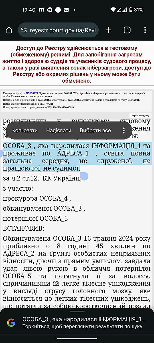 ▶️Випадок стався після того, як лікарка дала позитивний висновок для мобілізації чоловіка жінки. ВИРОК Кельменецького районного суду у справі № 717/1563/24