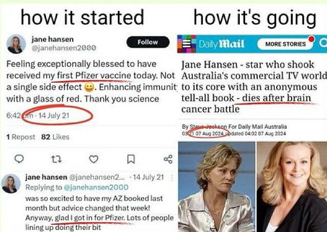 Липень 2021 - перша вакцина Pfizer. Серпень 2024 - смерть (рак мозку).