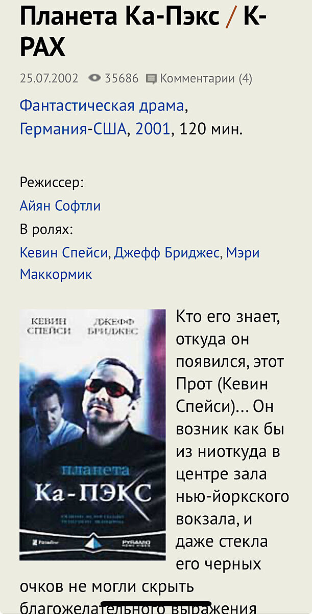 Я, к примеру, не смотрела этот фильм, потому спасибо за рекомендацию. Люблю Кевина, самый любимый с ним фильм Обычные подозреваемые. Кто не смотрел, рекомендую этот отличный фильм, хоть он и из старых, с очень закрученным сюжетом.