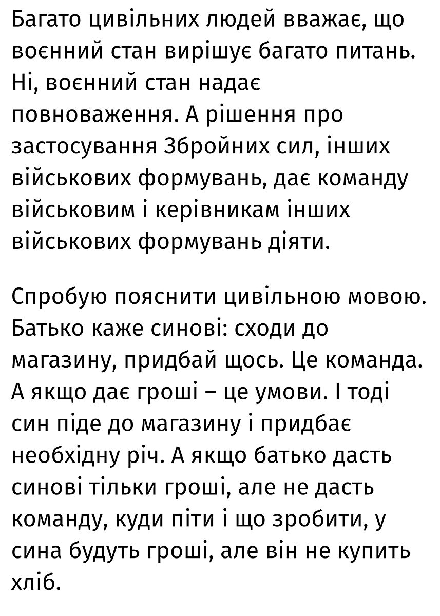 Це цілий ланцюжок. А от генерали в своїх наказах, роздаючи БР-ки мають посилатися на норму якогось закону, який дає їм право застосовувати бойові підрозділи і зброю.