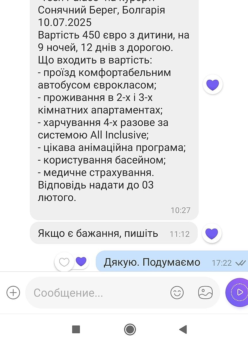 Більшее того, читала дуже неоднлзначні відгуки про болгарський табір для українських дітей, який організовує фірма автора оголошення.