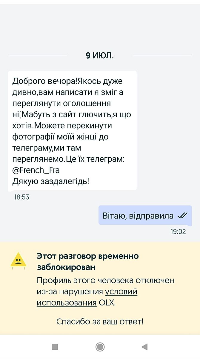 Вчера Олх удалил пользователя, с которого мне изначально писали.