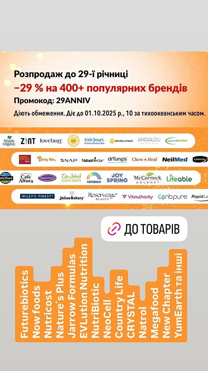 🌿29ANNIV - знижка 29% на 17 тис товарів 400+ брендів