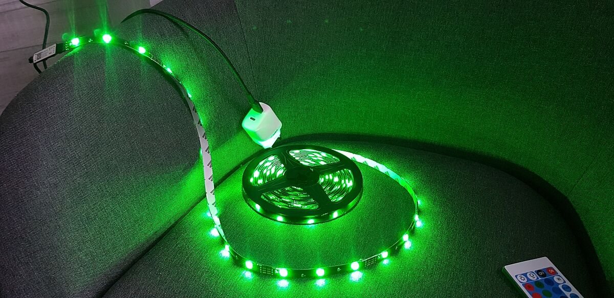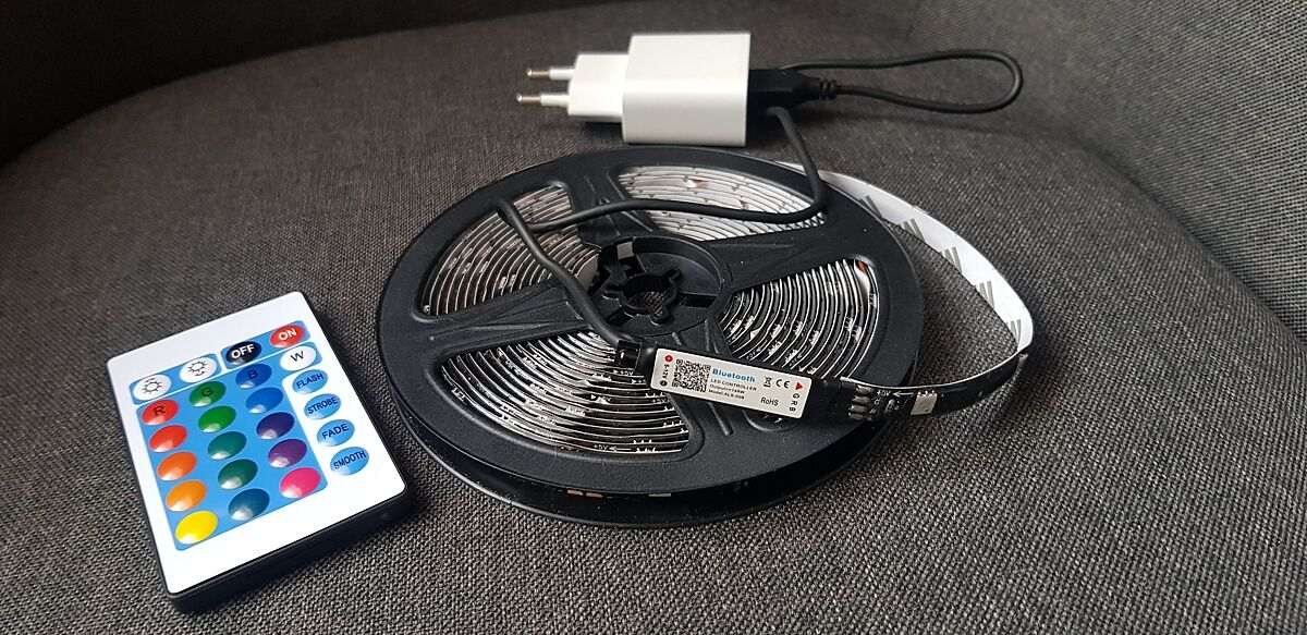Купила вчера ленту в Авроре. Судя по тому где она лежала, только привезли. 5 метров от usb. Есть пульт, но в приложении которое скачивается через QR код, возможностей больше. Света она дает меньше чем ожидала, так как уже есть одна с али, она цельная, без отдельно видных диодов...но...какая же она залипательная. Есть функция в приложении "микрофон". Когда ее включаешь, диоды начинают светиться разными цветами в такт музыке, если положить телефон возле проигрывающего устройства. Мега довольна. Вчера втыкала до ночи. Появилась четвёртая вещь на которую можно смотреть до бесконечности.