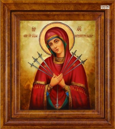 1. «Семистрельная» - сильнейшая икона в защите дома и любого помещения, а также того человека, на ком она находится, от злых, завистливых людей, от сглаза, порчи и проклятий. Примиряет враждующих, приносит мир, лад, её также берут на важные дела. Дома она должна находиться напротив входной двери, чтобы видеть глаза входящего. Перед установкой иконы надо прочитать молитву, впоследствии понаблюдать, кто перестанет ходить в ваш дом.