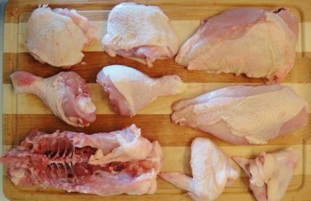 1. Отрезать у куриц крылья,голяшки, это по 8 штук ,на 2 обеда и ужина.