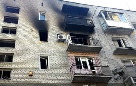 это реально донецк.там еще репортаж есть,бабушка в квартире плачет.госсподи,потолок проломлен,все разрушено,она стоит вся в пыли и тапочки на босу
