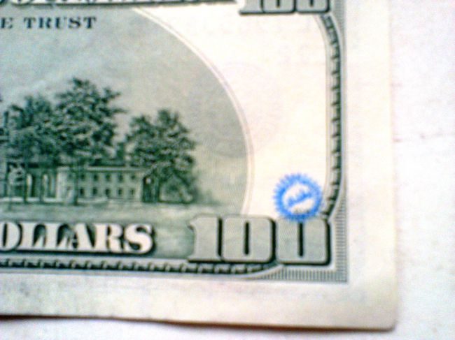 Я попала на 100$ смотрите и будьте бдительными.Таких наверное уйма гуляет, город Киев.Может кто-то сталкивался и знает что это за знак?Я думаю что фальшивка.