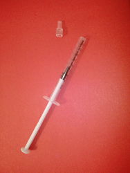 Далее, плотно прижимаем шприц к поверхности тела, накрывая клеща-агрессора, который решил попить нашей кровушки и начинаем постепенно тянуть поршень наверх. Таким образом создается избыточное давление, которое просто высасывает клеща из кожи.