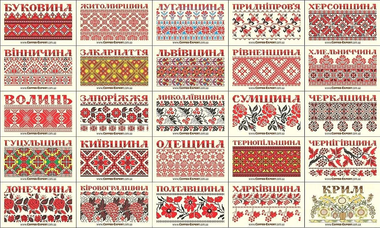 Кожна область України мала свої характерні візерунки вишивки. Найпопулярнішими кольорами, окрім білого, були червоний та чорний. До речі, найдавнішою технікою вишивки була мережка білим по білому, а «хрестик» став популярним тільки в кінці 19- початку 20 ст. Значення мала і тканина, з якої шилась сорочка, вона підкреслювала статус господаря: найдорожчими були сорочки з шовку та кисеї (серпанку, надзвичайно легкої, прозорої бавовни); також цінувалось тонке лляне полотно.