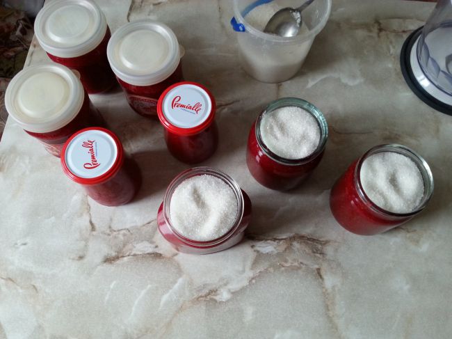 поэтому делаю 1кг смородины + 1,5кг сахара. До верха не доливаю, а затем присыпаю сахаром 1-2см и закрываю. Банки чистые. Стоит при комнатной температуре 1 год.