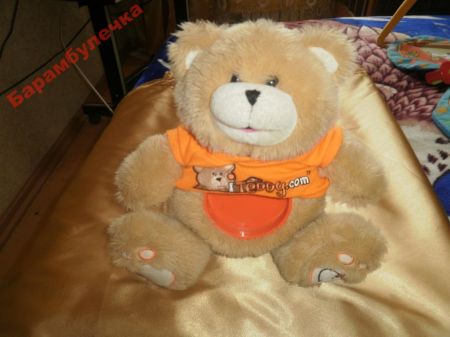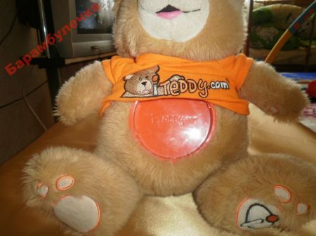 Мягкая игрушка,симпатичный медвежонок.Размер-38*32.Мягенький,позитивный.На животе пластмассовый кружок--всё,что осталось от игры,которая была туда встроена(см.последнее фото).Кружок закрывается футболочкой,и его не видно.В самом медвежонке никаких деталей внутри нет--он весь мягкий.Отправка ТОЛЬКО Укр Почтой,медведя забирайте за вашу цену--вся сумма Анечке,мне только за пересылку(10 гр)на карточку.Пишите в личку.