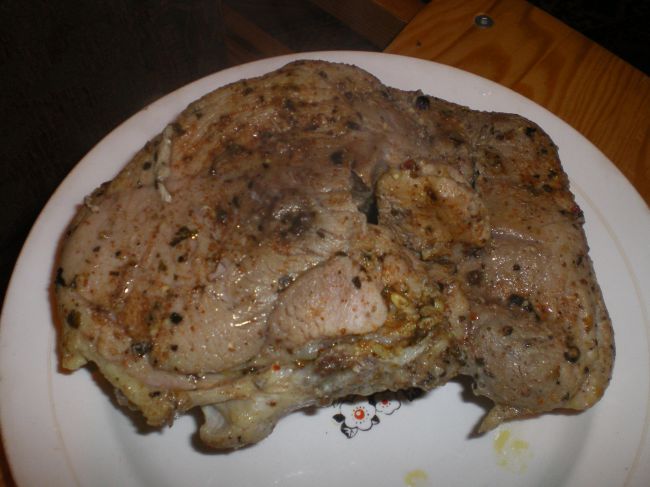 Мясо моем, впитывает лишнюю влагу бумажной салфеткой, обваливаем в специях, и отправляем в прохладное место на несколько часов;