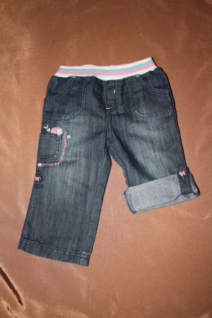 Джинсики Mothercare, р-р 9-12 месяцев (мы их носили дольше), пояс на резинке, штанины можно подкатывать (фиксируются на пуговичках) и носить как бриджики, состояние очень хорошее. 25 грн.