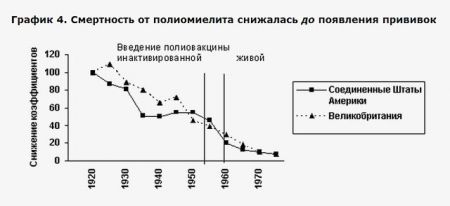 вот табличка, где видно что смертность от полиомиелита снижалась еще до появления прививок - все благодаря санитарной реформе.