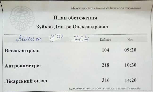 Со 2 ноября 2015 г. у нас запланирован очередной курс лечения в г. Трускавец, но деньги для продолжения лечения собирать все сложней (т.к. со сложившейся ситуацией, мы остались без дома, без работы…)! Для того чтобы пройти это лечение нам необходимо 12 890 грн.(7 890 грн. – лечение, 5 000 грн. – проезд и проживание).